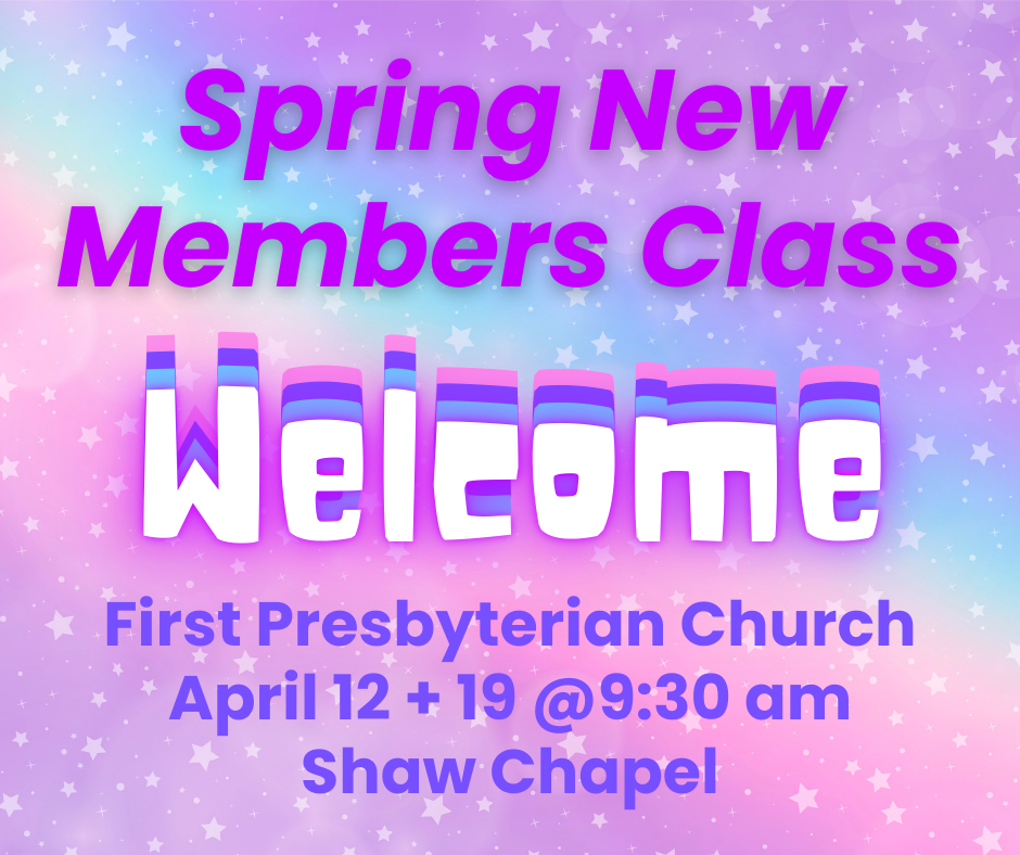 Thinking of joining the church? Then RSVP us for our 2-session spring class April 12 + 19 @9:30 am in Shaw Chapel with the co-pastors and Stephen Henderson, Membership Elder.